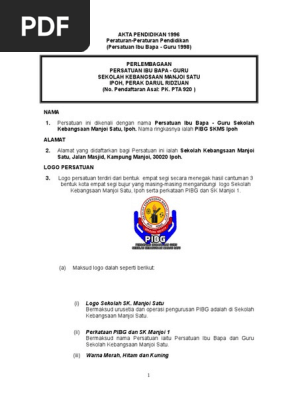 Contoh Perlembagaan Pibg Sk Manjoi Satu Pdf